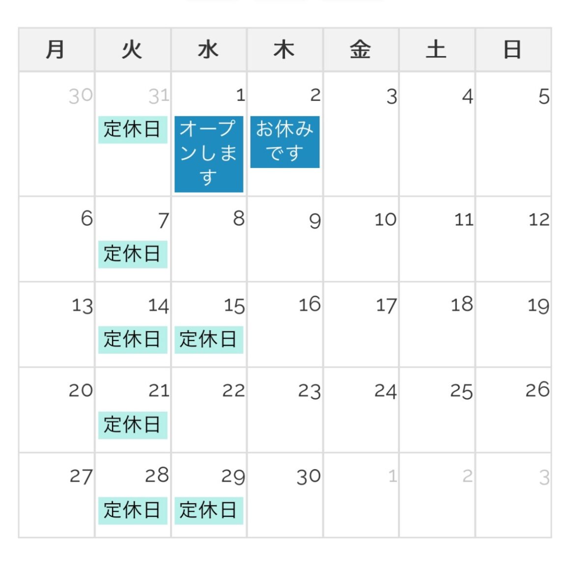1日水曜日と2日木曜の定休日がテレコになるくらいで